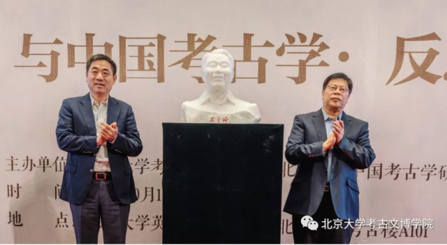 随后,邱水平与关强共同为苏秉琦先生塑像揭幕。这尊塑像将永远安放在北京大学考古文博学院,引领后学潜心学术、读万卷书、行万里路。