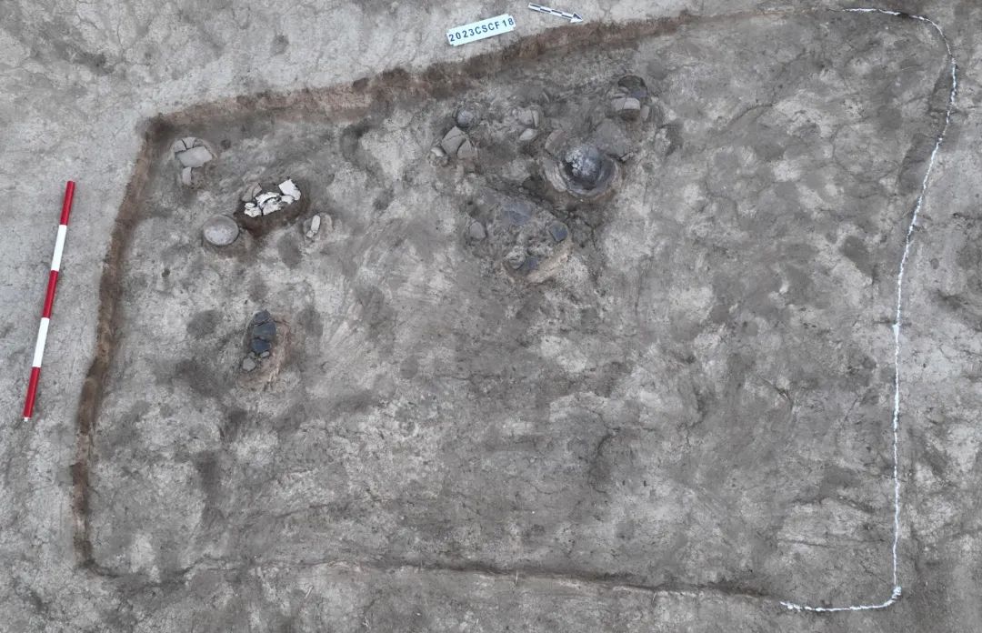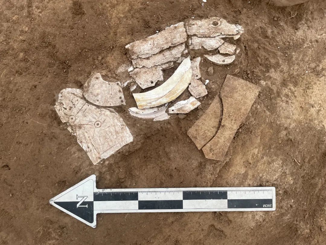 据了解,松山区彩陶坡遗址位于赤峰市,赤峰市又被称为“玉龙故乡”。这件蚌饰出土自松山区彩陶坡遗址一座房址的西南角,质地酥脆,考古队员对现场进行了加固处理,将蚌饰连同周围土块整体提取,下一步将聘请专业的文保人员做好拼对、修复和后期保护工作。