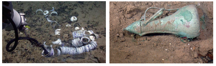 出水文物中最令人瞩目的是一批中国瓷器,这是地中海海域沉船上迄今发现的最早一批,包括360件施有纹样的瓷杯、瓷碟和一件瓷瓶,均为明末崇祯皇帝统治期间的景德镇瓷窑出品。中国茶杯在17世纪被奥斯曼人用来喝咖啡。