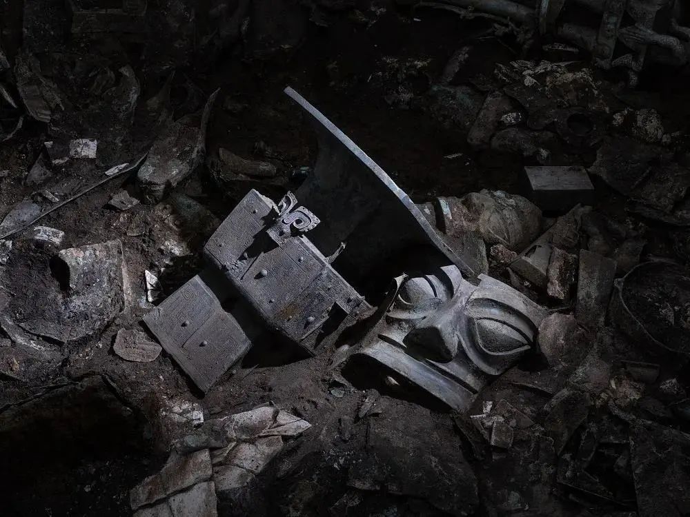 K3位于8座“祭祀坑”所在区域中部,开口面积约14平方米。推测K3埋藏之后不久,这个区域就废弃了。K3出土各类器物残件和标本共729件。较完整遗物共478件(组),残件141件。其中,较完整器物包括铜器293件、玉器45件、象牙100根、金器7件、骨雕2件、石器2件、海贝26件(组)以及材质不明器3件。