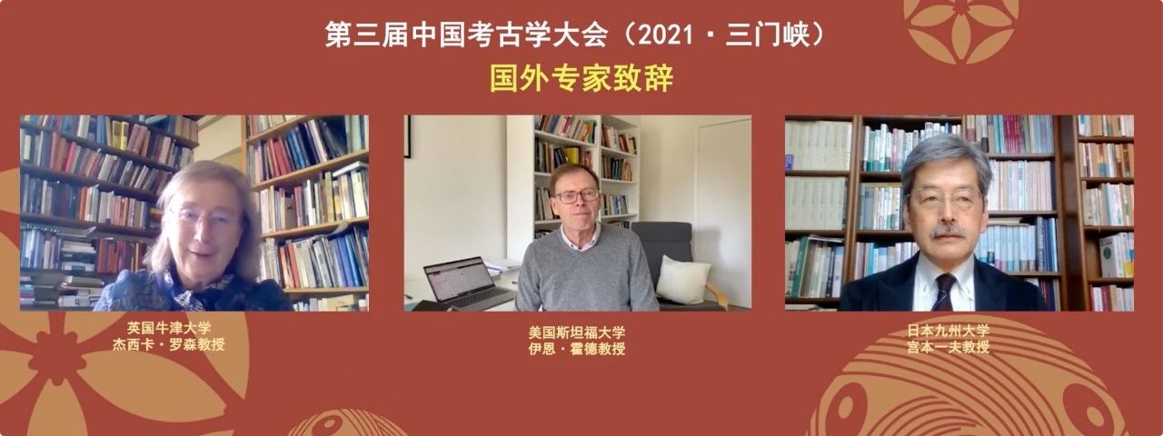 英国牛津大学教授杰西卡·罗森爵士,美国斯坦福大学教授伊恩·霍德,日本九州大学教授宫本一夫通过视频致辞。
