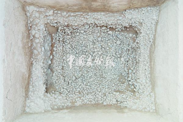 2018年继续清理上年未完成的M3011,位于墓地中部偏北(Ⅲ区)。M3011方向7°,为一座大型竖穴土坑积石墓葬,与2016XTM1东西并列,相距约10米,是一对夫妻异穴合葬墓。墓口长6.4米、宽5.2米、深约10米。在椁盖板上及椁室四周、椁底发现有积石,为大小不匀的河卵石。西北角发现有盗洞,但因墓室较深且有积石保护,除西北角被盗外,其余保存尚好。