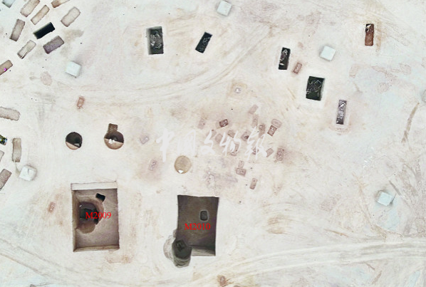 规模最大的两座墓葬M2009、M2010,相距约8米,东西并列,是一对夫妻墓。M2010靠近墓口北部有玉石器祭祀遗存,因距地表较近,多被破坏,以碎石圭为主,玉器很少,有玉人、碎玉片等。玉石器的外围有动物祭祀,由内向外依次为狗、马,狗坑有二十余个,很浅,无明显边界,更像是放在地上直接填埋;马坑较深,有十余个,可辨性别的个体均雄性。M2009近旁亦有少量的狗坑、马坑。
